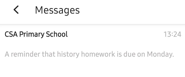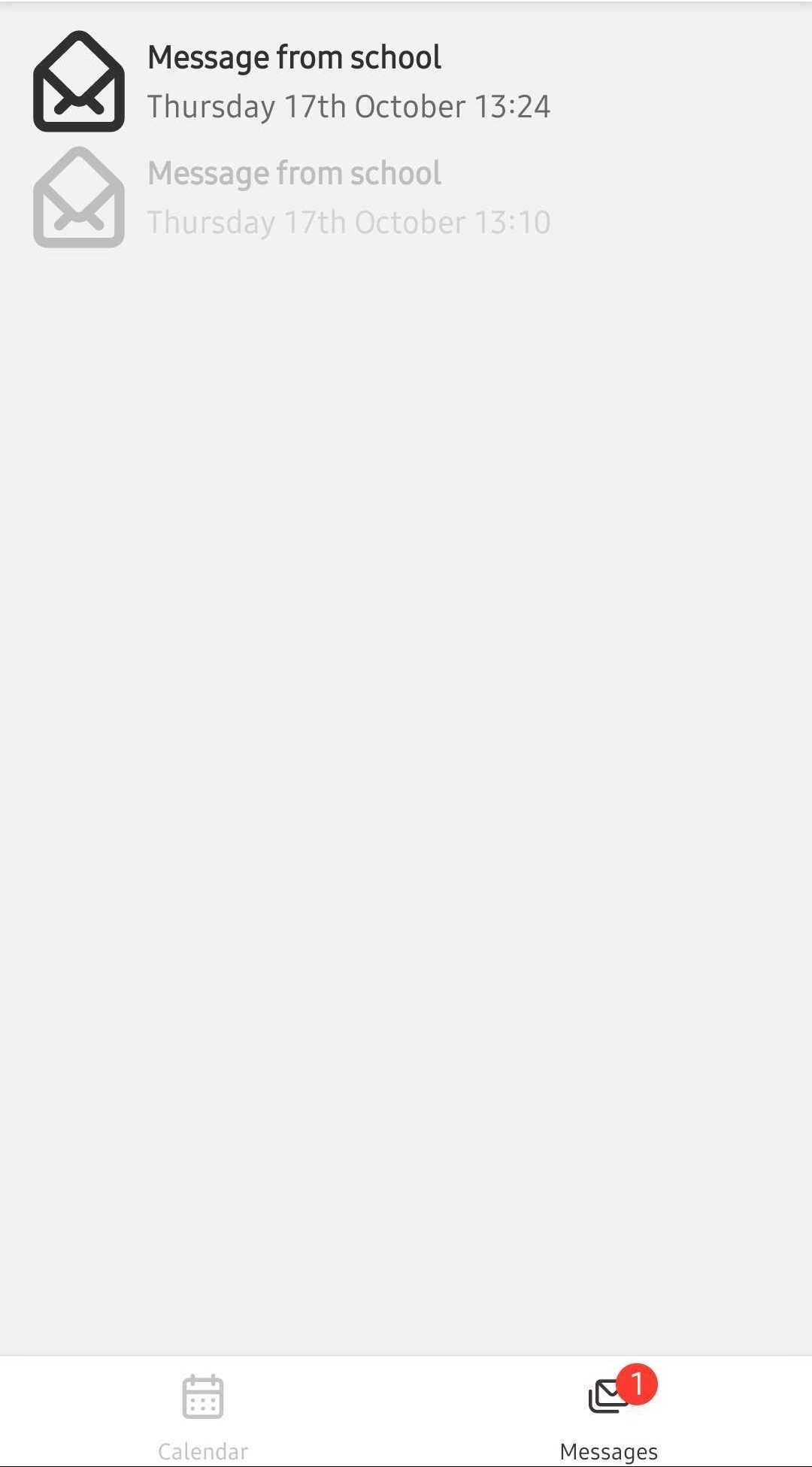 The messages tab allows students to see all in-app messages that are sent to you by the school. Messages will show the subject on this page, and you can tap on a message to see its contents. There is currently no functionality to reply to in-app messages.
